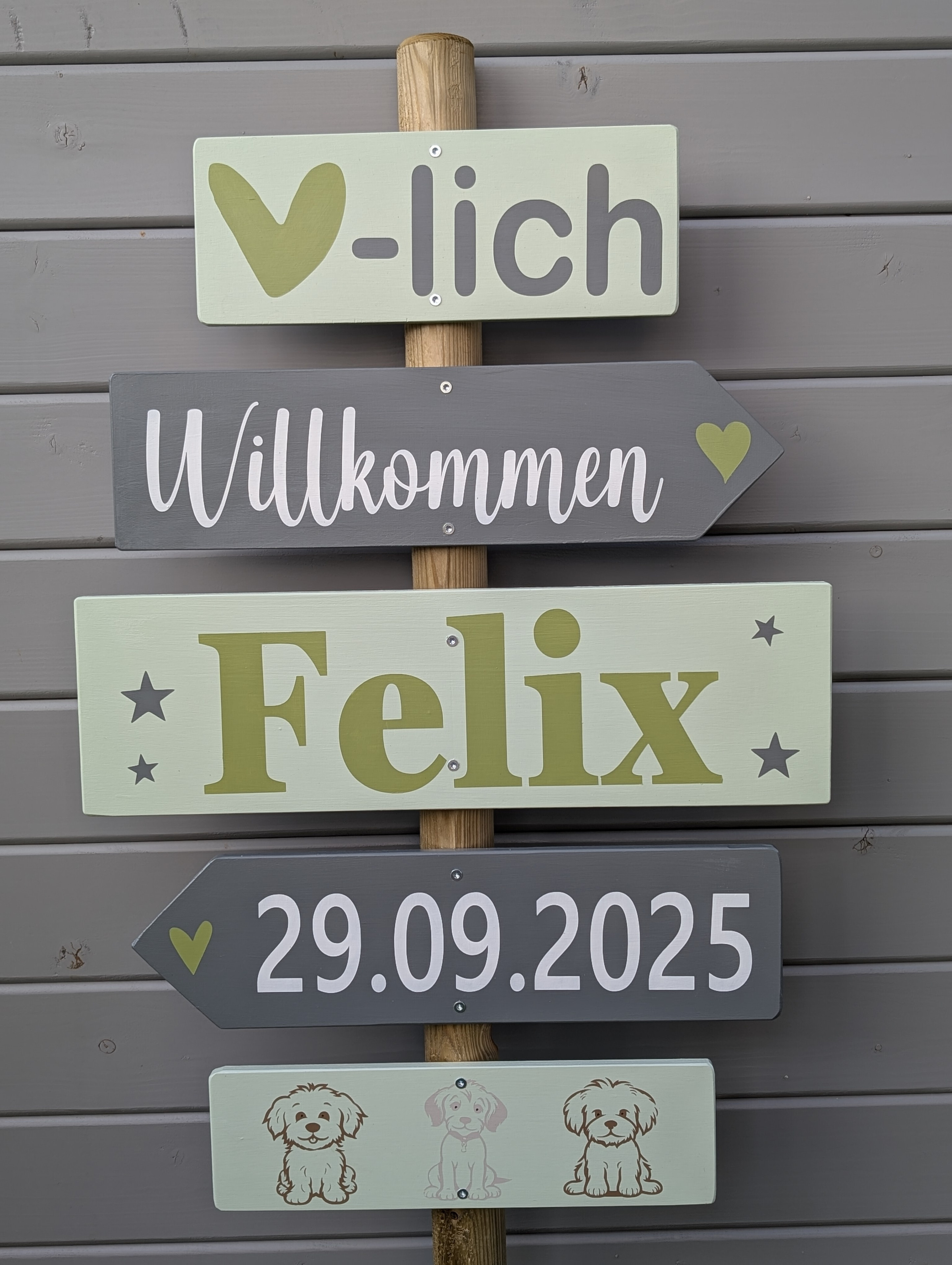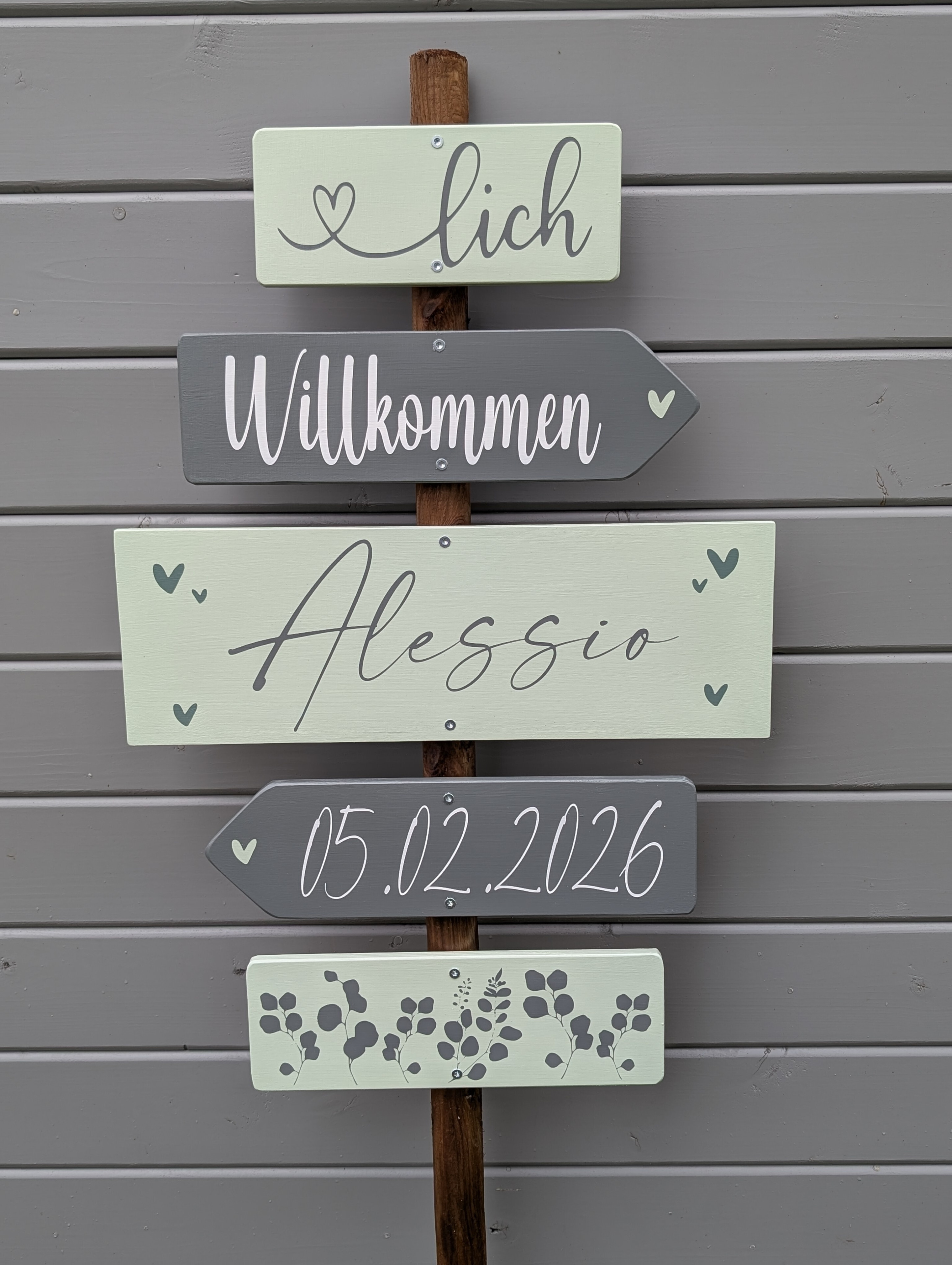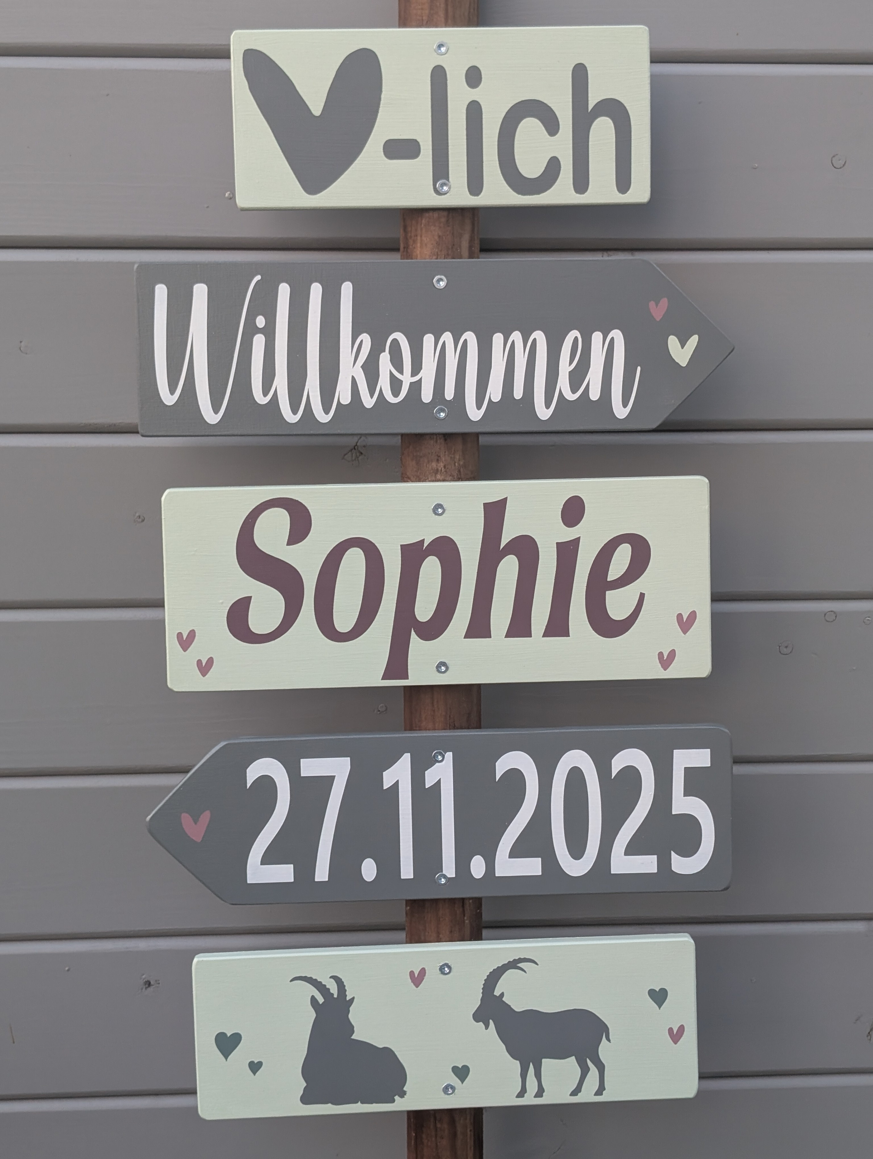 Wir fertigen dir individuelle von Hand einen Wegweiser, welcher zu dem kleinen Wunder passt.